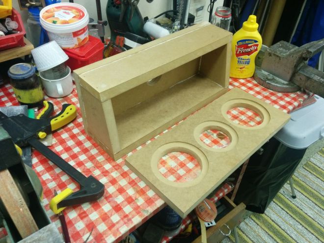 Glued box with baffle in front